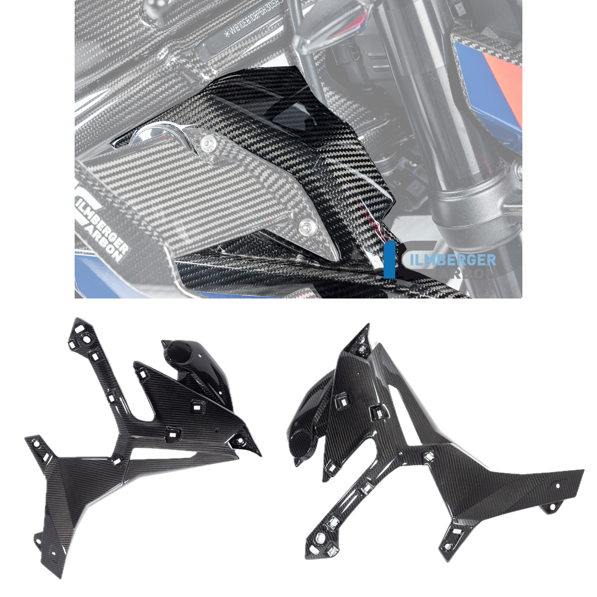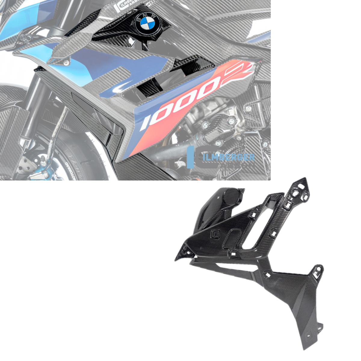 Note: These radiator covers are designed to work in conjunction with the Ilmberger Carbon Side Panels and M1000R winglets. This is the base layer of the 3-layer update to the side of the motorcycle.
