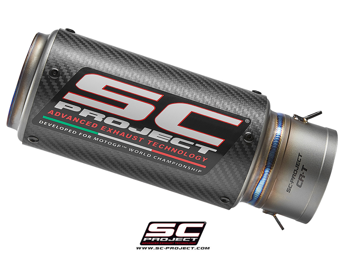 The CR-T, a multiple World-Champion muffler, is the most widely recognized design of the SC-Project exhaust range. This iconic muffler offers performance gains and weight savings, due to direct research and development gained in MotoGP and Moto2 Championships.