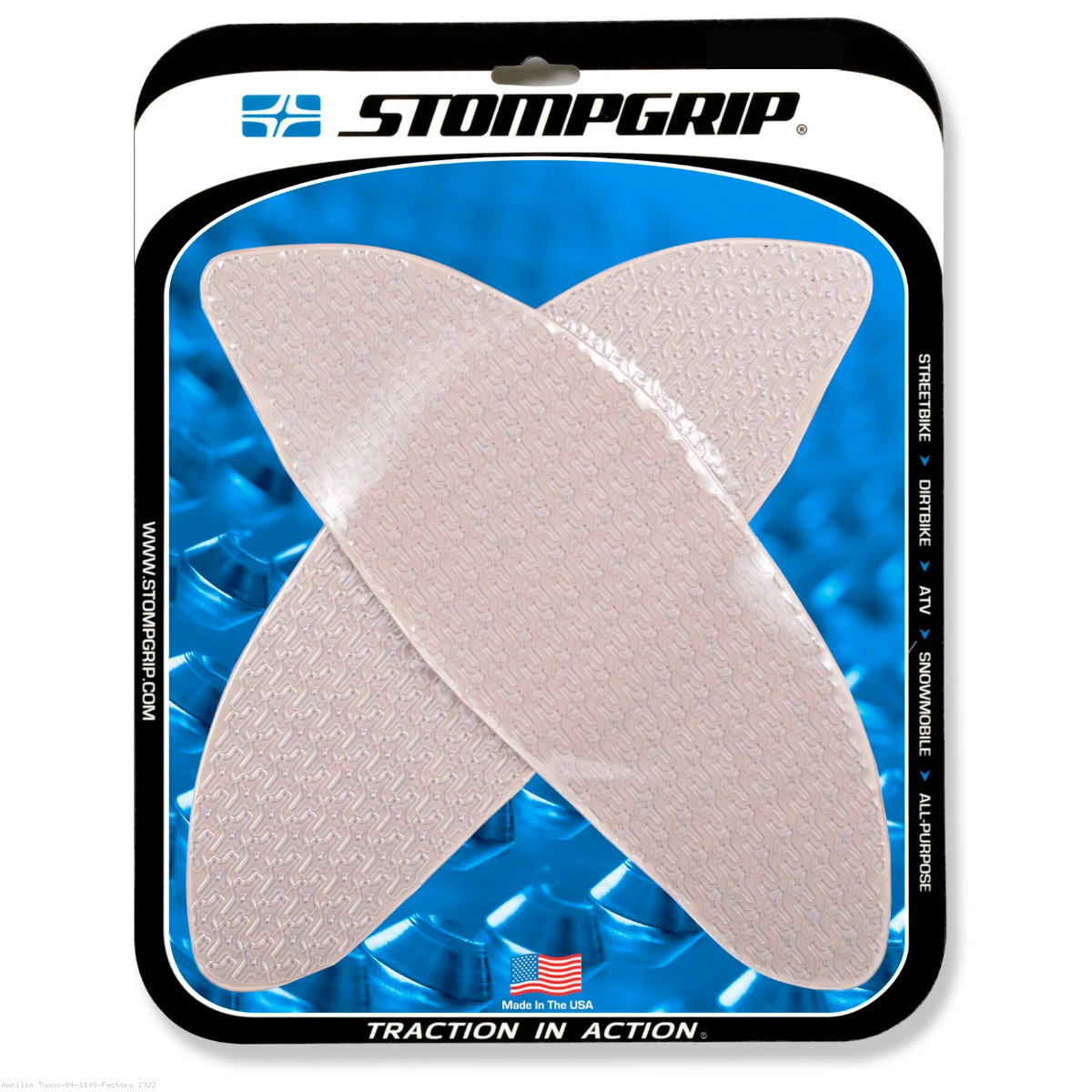 - Rounded-edge design to prevent peeling off tanks under extreme use versus being die cut with rough edges that can catch or snag on riding gear.